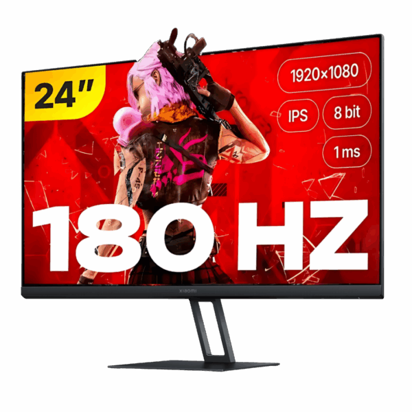 The Xiaomi Gaming Monitor G24i is a 23.8-inch Full HD display with a 180Hz refresh rate and 1ms response time for smooth gaming. It features a Fast IPS panel with 99% sRGB for vibrant colors, AMD FreeSync support to reduce screen tearing, and wide 178° viewing angles. The sleek design includes tilt adjustments for comfortable gaming sessions.